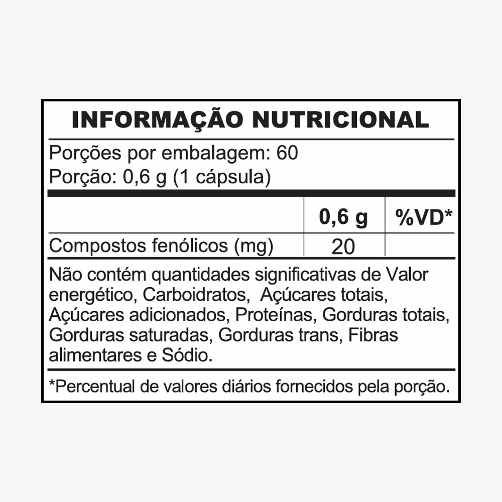 20 mg de compostos fenólicos por cápsula